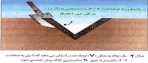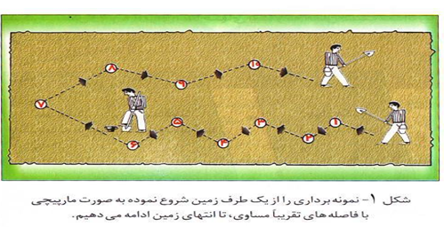 ازهمه نقاط توسط بیل همانند شکل 1 برداشت کرده وسپس همه را باهم مخلوط نموده و به اندازه یک و نیم کیلوگرم داخل کیسه پلاستیکی تمیز وسالم ریخته وضمن نوشتن مشخصات همه نمونه ها به آزمایشگاه ارسال گردد.