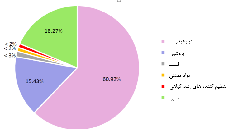 شکل 1- ترکیب تخمینی عصاره جلبکهای دریایی متعلق به سه دسته بزرگ جلبکهای دریایی (قرمز، سبز و قهوهای).