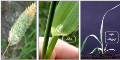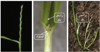 - در حاشیه برگ پرزهای مژه مانندی به طرف قاعده، در مراحل اولیه رشد وجود دارد که از گندم قابل تشخیص است.