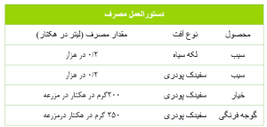 دوره کارنس : در خیار و گوجه فرنگی ۱ روز و در سیب ۷ روز.